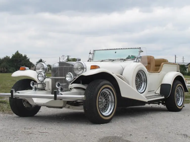 The Excalibur Series III is a continuation of the marque’s move to a more luxurious platform that now incorporates a Chevrolet 454-cid, 215-hp engine. With room for four, the interior is appointed with leather seating, air conditioning, full instrumentation and AM/FM stereo radio. On the exterior you will find skirted fenders, chrome wire wheels, external pipes, dual airhorns and driving lights.