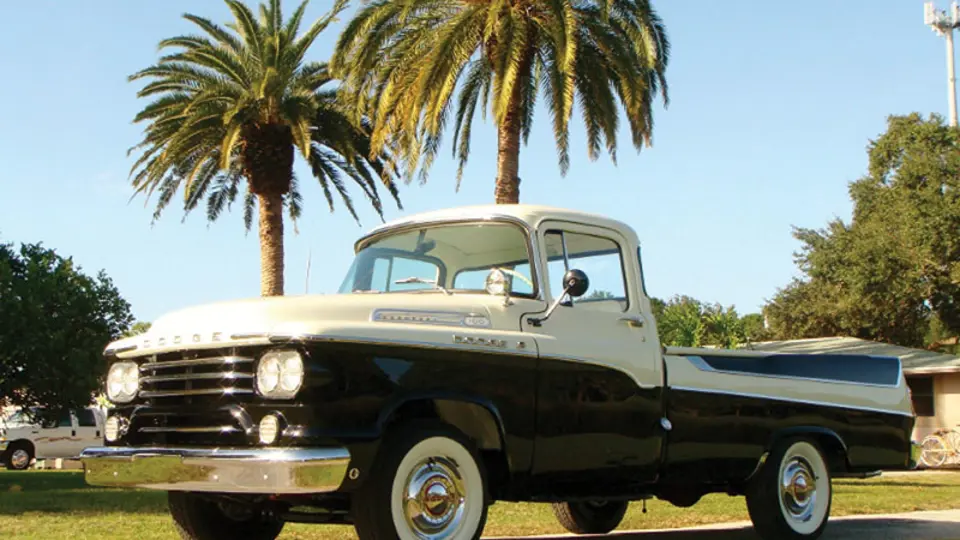 Dodge produced the Sweptside pickups for only a short time and in limited numbers. From 1957 to 59 they were available on any of the pickup truck models and with any equipment desired. By taking the regular pickup bed and narrowing it, they were able to add the panels with the fins. This was not done on a regular assembly line but by hand in a special equipment area within the plant.