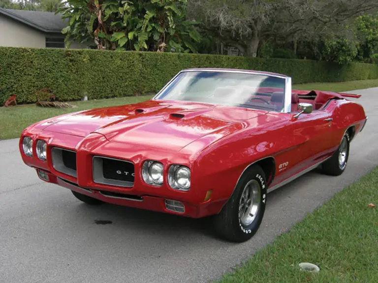 Super rare 1970 GTO convertible, 455 HO with matching numbers engine, trans., and 12 bolt posi rear end. Correct code 75 cardinal red, and code 254 factory red int. and correct factory power top. Only 241 GTO 455 convt. were built in 1970. This car has 20 factory options, making it extremely rare, estimated one of 20 to 30. Power steering, power disc brakes, tilt wheel, factory a/c that blows cold, factory bucket seats and console, factory am/fm radio and 8 track player,Factory rally two wheels. Excellent rust free, straight and solid body, with great fit and gaps. Original floors and trunk, great chrome and trim, full dual exhaust with correct tips. Engine vin. op225632, engine casting number 9799140, engine code YC ,date code B 230,trans M 40, Turbo 400 auto, heads number 64, rear end 323, fan 9796134,carb. 7040268 XC ,intake manifold 9799068,cowl tag ST 70 24267. This car is a fully documented PHS car with window sticker and original build sheet