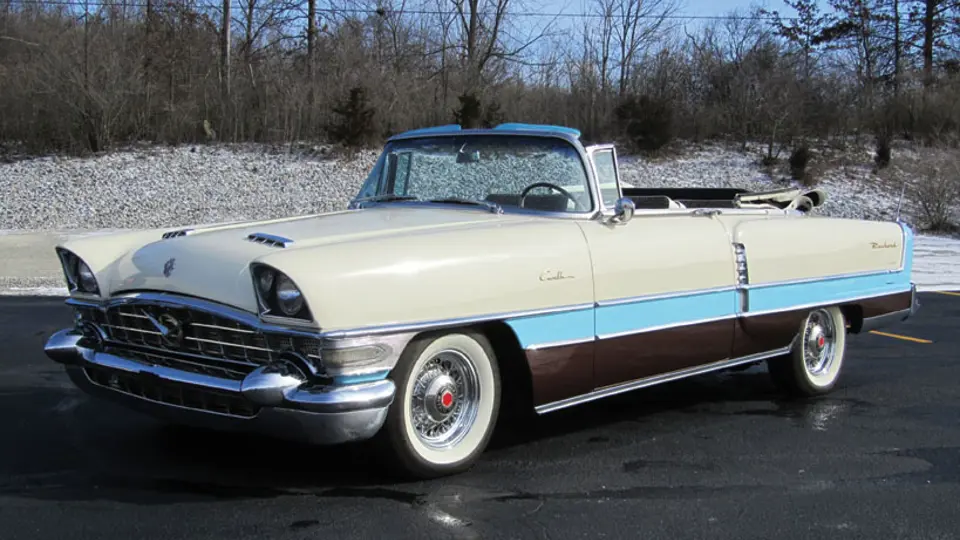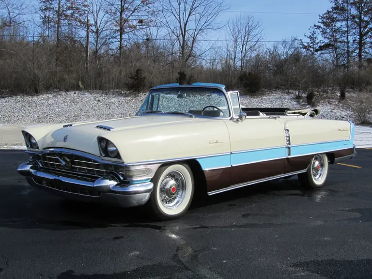 The 1956 Caribbean convertible was the last full-size Packard produced. Although most updates for 1956 were minor, one of the most attractive and spirited new features were the reversible seat cushions – leather on one side and elegant boucle’ cloth on the opposite surface. With the highest rating in the industry, Packard’s 374-cid V-8 engine produced 310 horsepower and has dual four-barrel carburetors. With a factory price tag at $5,995, the Caribbean was breathtaking, and accordingly, Packard was able to only sell the limited quantity of 276 convertibles and 263 coupes.