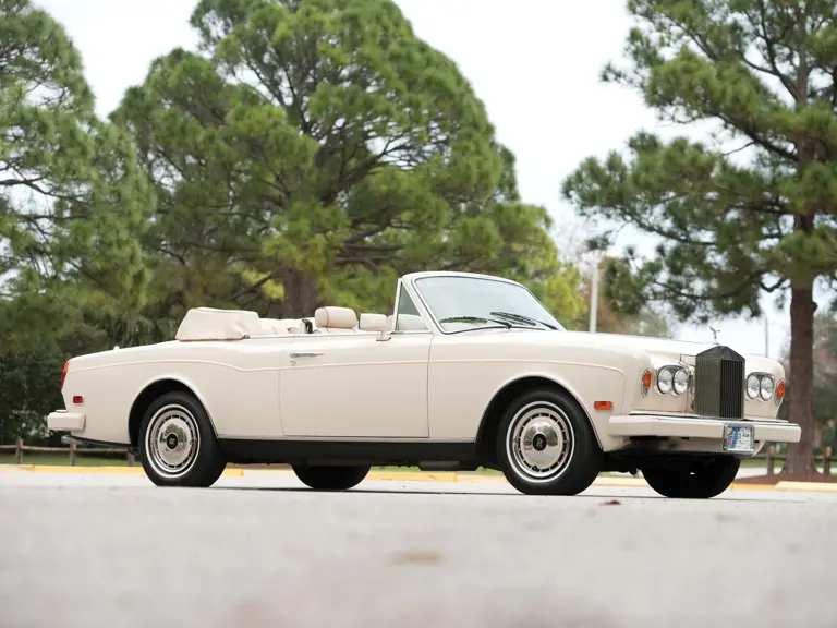 Offered here is a Rolls-Royce Corniche III finished in off-white with a parchment leather interior with complementary and beautiful burled walnut wooden veneers. The Corniche III was a complete evolution of refinements over the previous Corniche II, with many new features that included: alloy wheels, newly revised interior, advanced suspension, airbags and color-coated bumpers. This lovely example has the strong and steady 6.75-liter V-8 engine with a smooth automatic transmission, and stopping power from four-wheel disc brakes. Showing great exclusiveness, sources indicate that less than 500 similar cars were built. Among the niceties are air conditioning and power features galore, as one would expect from a motorcar of this stature. The Corniche is one the most recognized Rolls-Royce models ever made and is ready with many luxuries for its next owner to enjoy.
