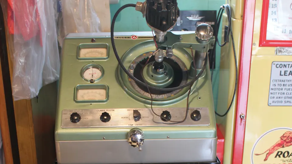 Allen Synchrograph distributor machine with cabinet