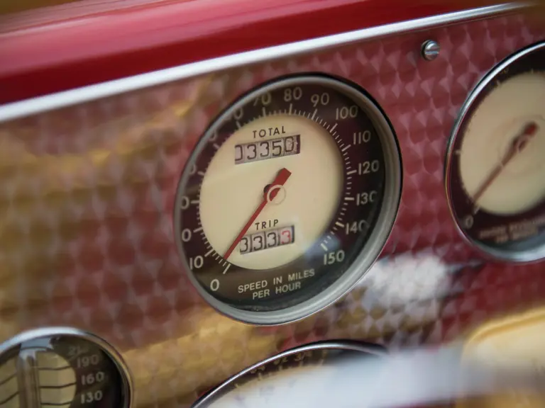 The phaeton offered here has been part of a prominent West Coast collection for several years. Finished in the factory-correct color scheme of Cigarette Cream over red, it boasts chassis frame no. 9071 and an original 812 engine, no. FB 2105; though the two were not born together, the car is composed entirely of original factory Cord components. It has recently undergone cosmetic work and service prior to the auction and presents very well overall, with a handsome and correct appearance.