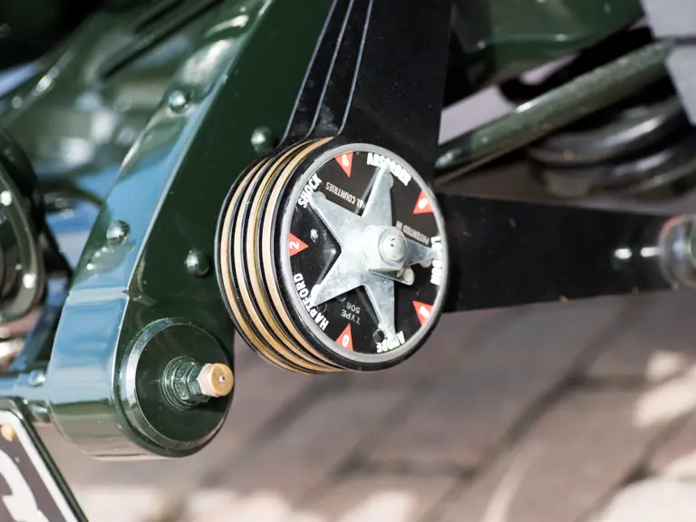The car offered here, the 1949 Bentley B Special Speed 8 Touring, is a truly stunning yet drivable homage to those 1930s racing Bentleys. It was built from Bentley and Rolls-Royce components for the consignor by Racing Green Engineering Limited of Carmarthenshire, Wales, in 2011. It features an original 1949 Bentley Mk VI chassis which is fitted with a period B81 6,516-cc straight-eight engine backed by a Bentley four-speed transmission. The custom coachwork of the Speed 8 follows the construction and design of the original Le Mans cars with an ash frame covered in aluminum panels and fabric. It is fitted with a proper fold-flat windscreen and wind deflectors. The interior is nicely appointed with an aluminum instrument panel fitted with high-quality reproductions of the original instruments, including Connelly leather and high-quality woven carpets.