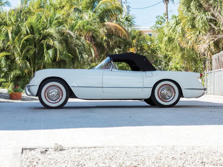 Presented in the highly desirable color scheme of Polo White over a red interior and equipped with an AM radio and heater, this 1953 Corvette is an ideal addition to any significant sports car collection.
