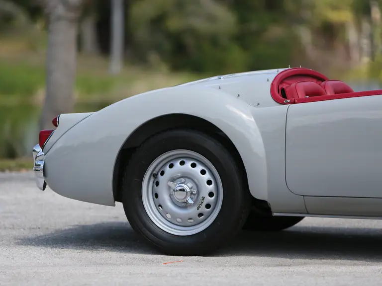 The MGA was still an imperial pint-size car that came in under a ton unladen, but even its 68-horsepower launch engine left it feeling a little winded. In 1958, MG added a dual-overhead camshaft version of its B-series engine, which boosted that figure to a far more satisfactory 108 horsepower. Dunlop four-wheel disc brakes reined in the power and the knock-off Dunlop steel wheels gave the MGA Twin-Cam a fresh, up-to-date look. Just over 2,000 MGA Twin-Cam roadsters were built between in 1958 and 1960, making them rare early high-performance British roadsters.