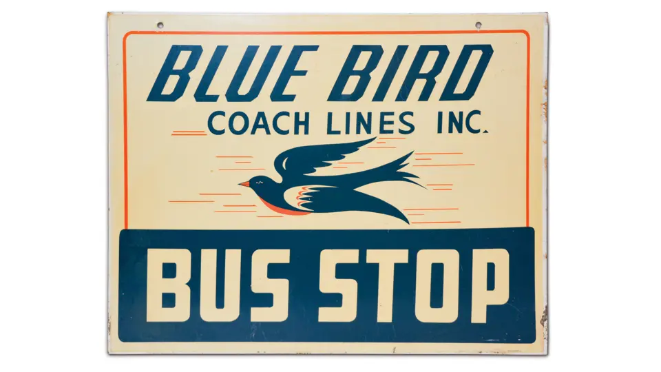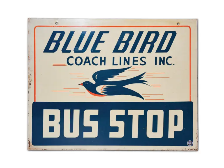Both sides of this sign have good color and shine as well as some light wear. The display side shows wear around the perimeter and the reverse is slightly yellowed.