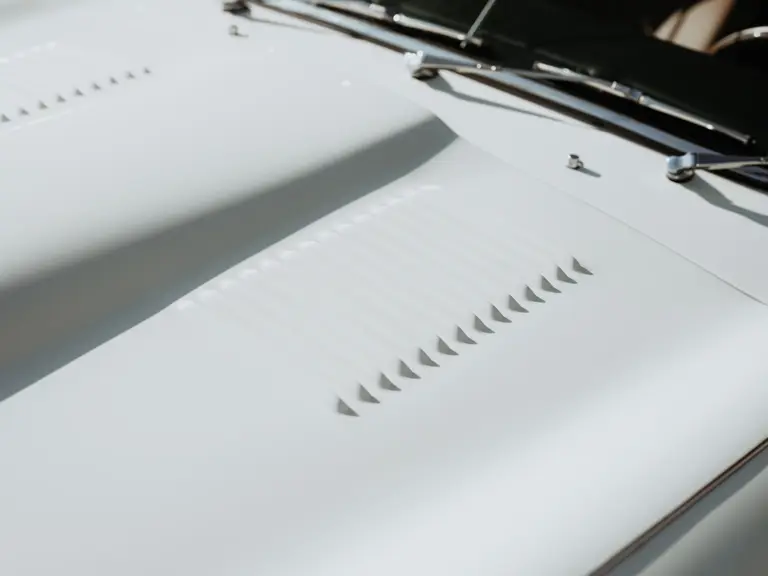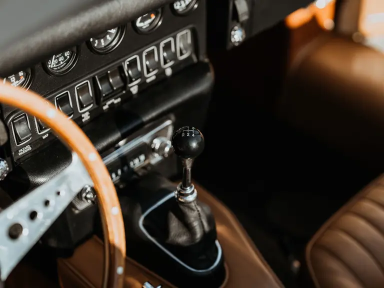 Chief among the Series 2’s attributes was its larger 4.2-liter dual-overhead-cam inline six, a feature introduced partway through E-Type Series 1 production; here, it produced 246 horsepower and, crucially, 263 pound-feet of torque. Some changes were prompted by evolving regulation, particularly new United States safety rules; others, including better engine cooling thanks to dual electric fans, a more ergonomic and comfortable cabin (complete with seats that now featured headrests), and improved three-caliper Girling front brake calipers and new Girling rear calipers, led to a more useable car that still proudly possessed the original E-Type spirit.