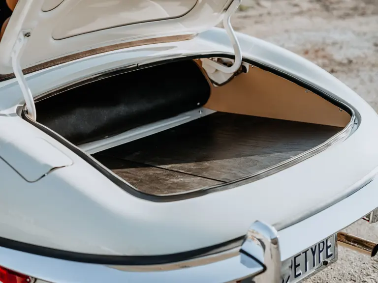 In the care of its previous owner, this E-Type was treated to a complete mechanical and cosmetic restoration by Steve’s Jaguar Service of Canoga Park, California. An extensive, itemized list of tasks on file illustrates the degree of care and attention to detail that went into every aspect of the work, which was completed in 2018. Over the course of this job, the car’s replacement 4.2-liter inline-six engine was rebuilt; ancillary mechanical components were rebuilt or replaced as needed, including oil and water pumps, wiring, cooling, fuel, and braking systems, and fitment of a new stainless steel sport exhaust