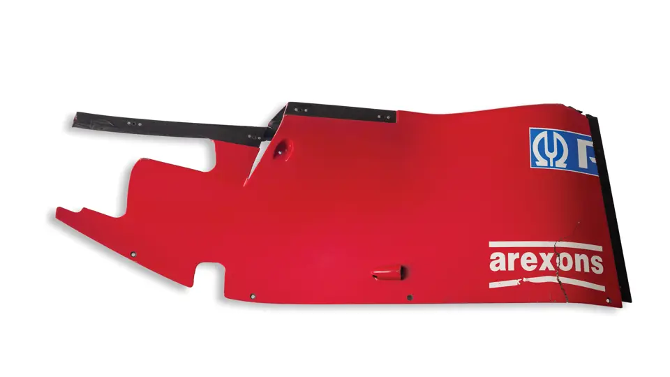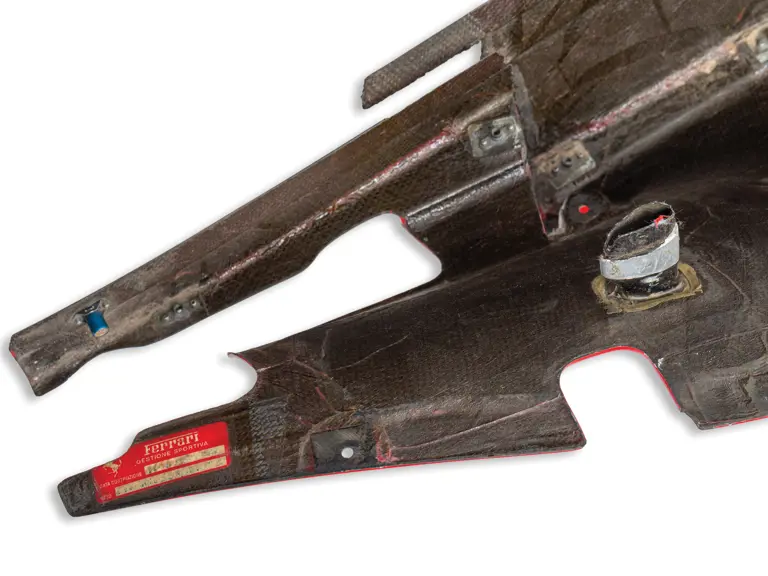 Accompanied by a Monalisa Motorsport certificat d’authenticite, these sidepods are from a Ferrari 412 T2 that was used during the 1995 season. According to the certificate, they were from one of the cars driven by Jean Alesi that was damaged during an accident.