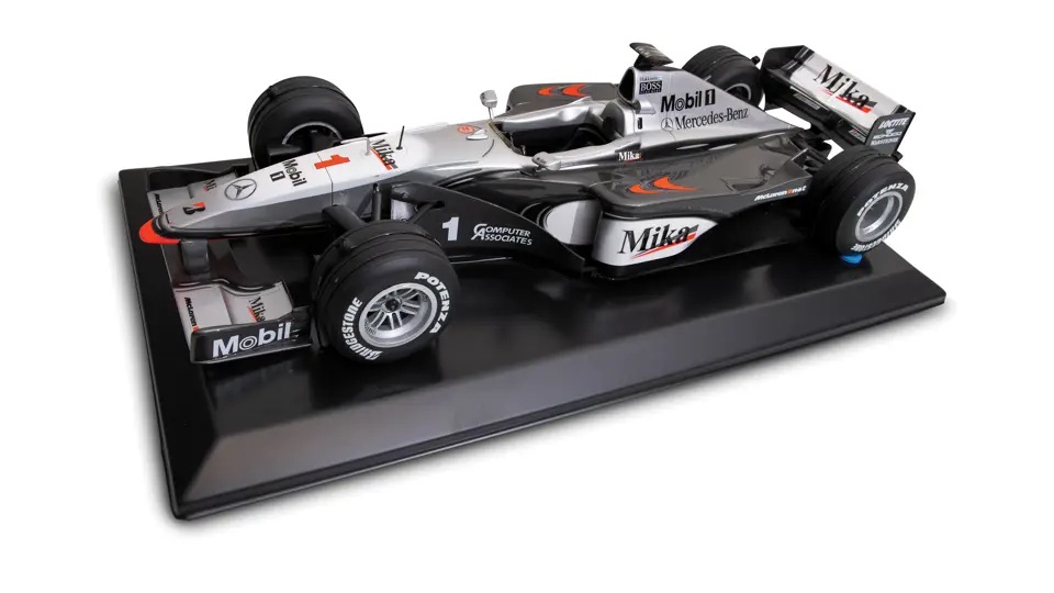 This 1:8 scale model is finished in Mika Häkkinen’s #1 livery and features his name “Mika” in place of the traditional sponsorship.