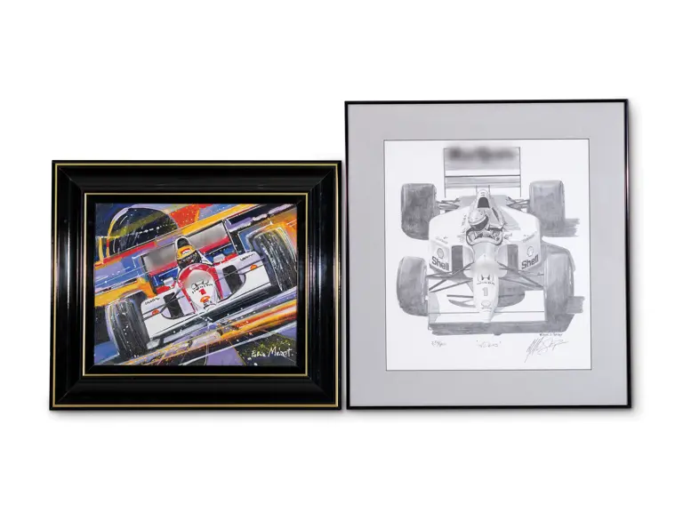 “Magic Senna”Patrice MérotAcrylic on canvas199720 × 23 in., framedSigned and dated by the artist.“Adeus”Michael D. SavageNo. 233/40024 × 22 in., framedSigned by the artist.