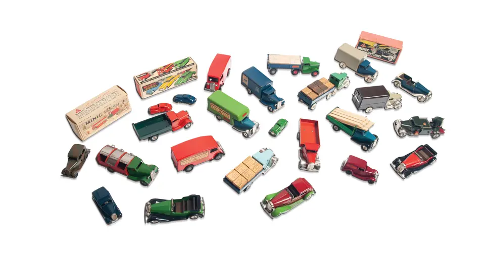 Includes boxed searchlight lorry and three small 'learner' cars.