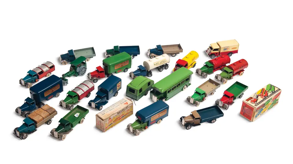 Primarily utilitarian trucks. Also includes delivery wagons, a city bus, milk and gas trucks.