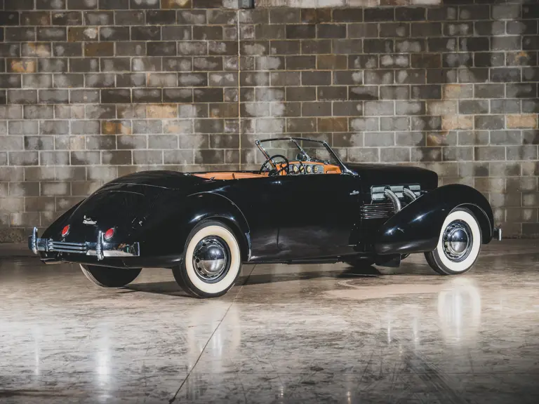 Fred Guyton acquired the Cord from an owner in Michigan in 2008, and it has been part of his fine collection alongside other Auburns, Cords, and Duesenbergs for over a decade. Its restoration is well maintained and very attractive, with the finishes under the hood appearing largely authentic, and the top, hard to get “right” on these cars, properly stitched and fitted. Accessory Cord driving lights and a Cord Delco radio are fitted, and the car is accompanied by several pieces of Cord literature, including a reprinted owner’s manual and bound copy of the Factory Service Bulletins.
