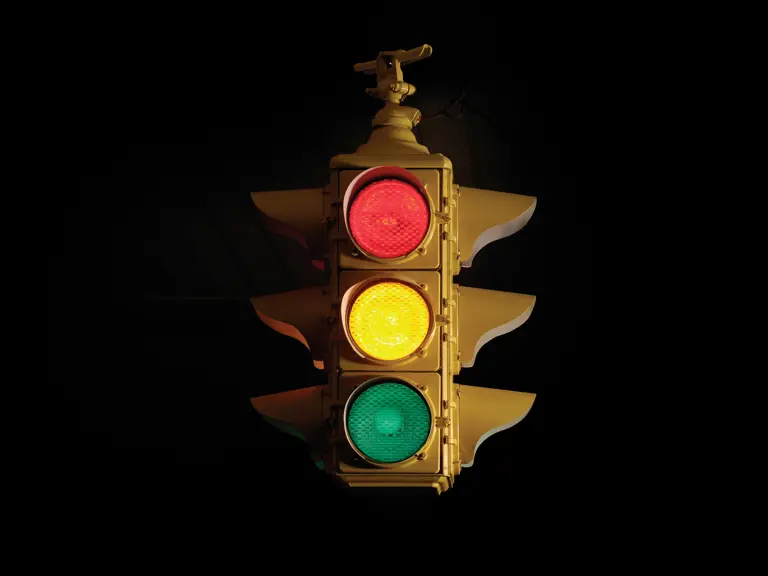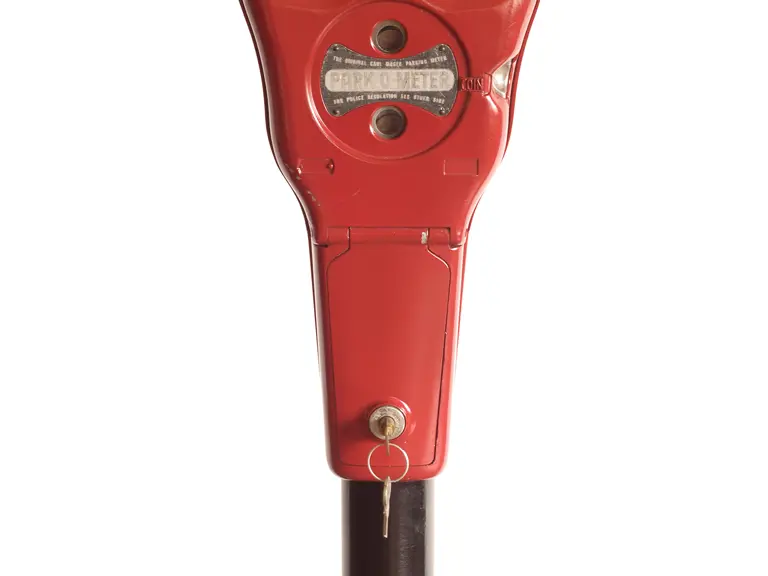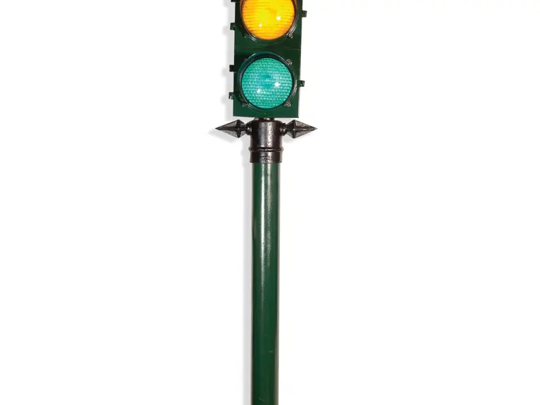 Offered here are two functioning traffic signals, one mounted on a pedestal, and a vintage style parking meter in presentable condition. It has been mounted on a black pedestal base.