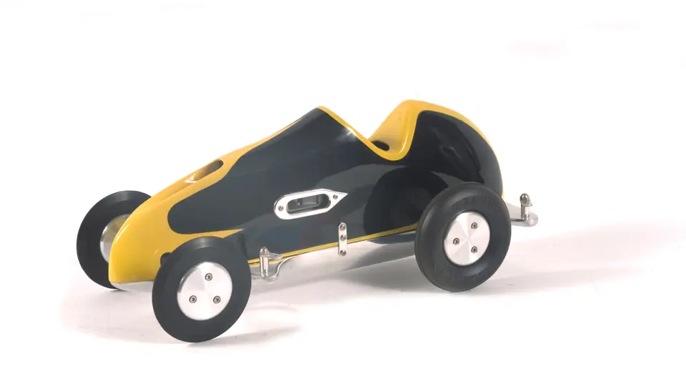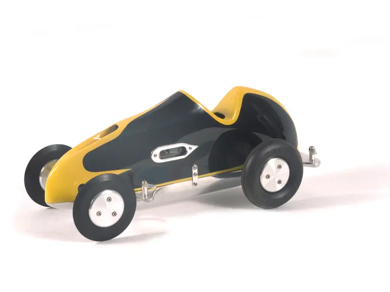 Offered here is a static display model of a Tornado tether car, recreated in the style of the vintage models originally produced in the 1930s. An extremely presentable example, it has a fiberglass body and aluminum belly pan.