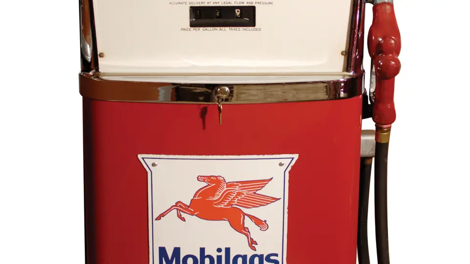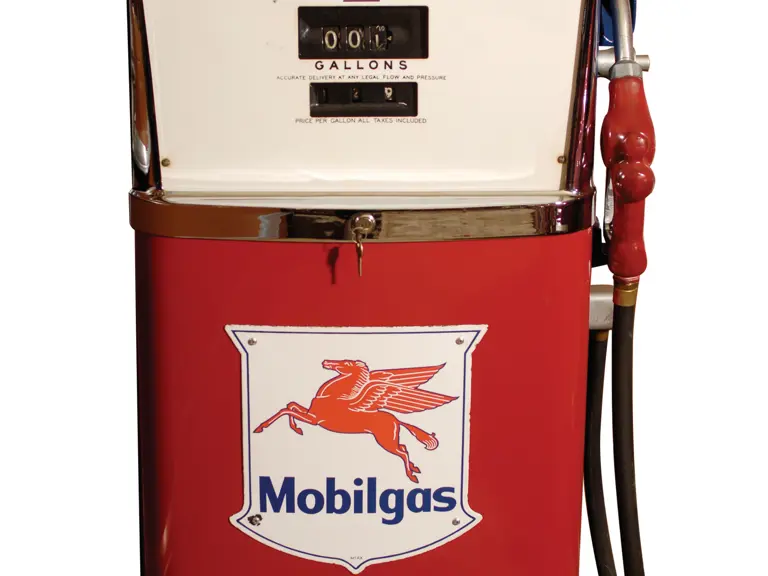 48 inches in height. This petite 1959 era Smith 480 gas pump has been restored in Mobilgas colors and trim. An attractive short pump, it features a smooth finish and original porcelain Mobilgas pump plates.