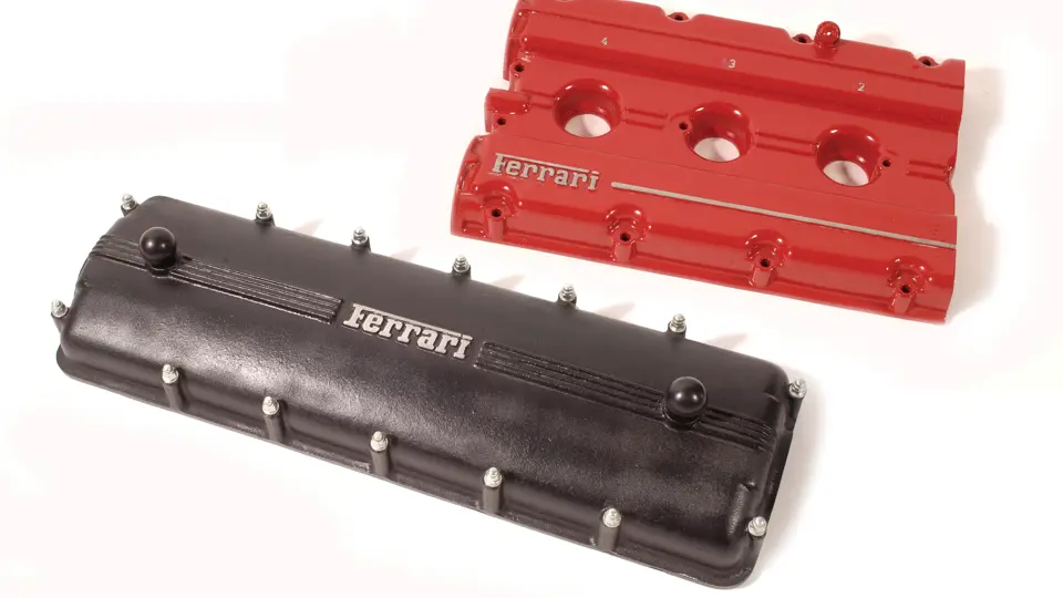Offered here is an original V12 black speckle Ferrari valve cover in good condition as well as an original V6 Ferrari cam cover in very nice condition.