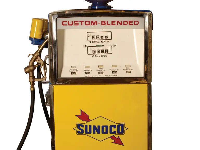 75 inches in height. This more modern Sunoco pump is in very nice, restored condition and features a three piece Blue Sunoco globe.
