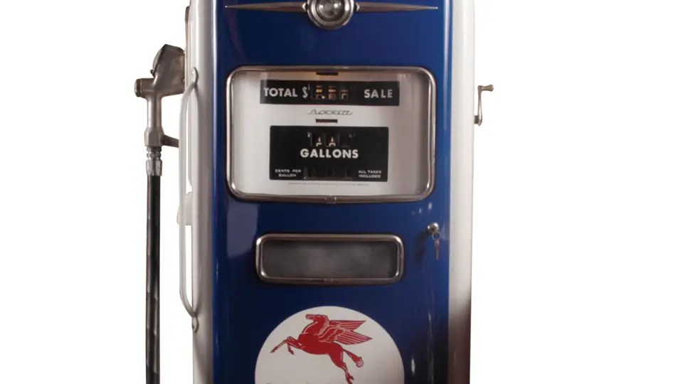 75 inches in height. This attractive 1954 Bennett model 966 pump has been restored in Mobilgas Special colors and trim. Featuring chrome trim, ad glass and a three piece reproduction globe, this is a very nice example with only a few very minor areas of wear.