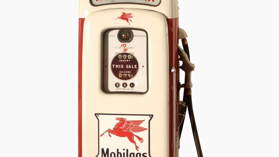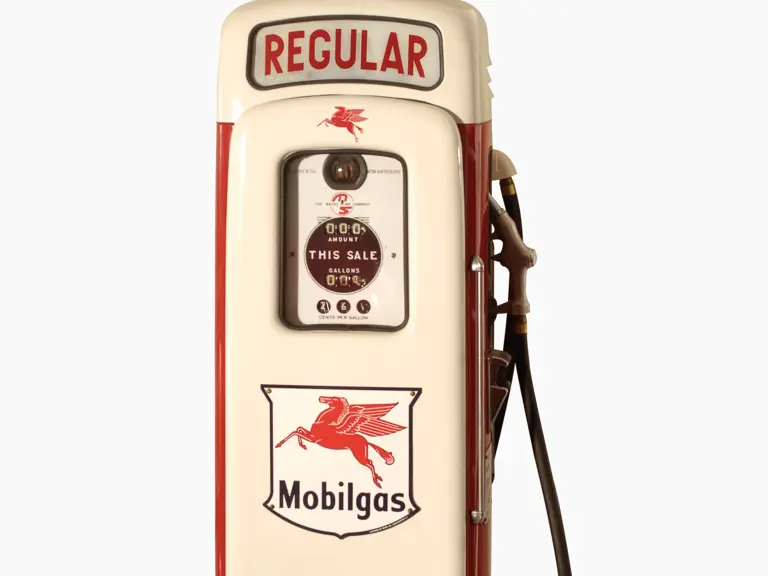 80 inches in height. This 1948 era Martin & Schwartz pump has been restored in Mobilgas trim. A nicely finished example, it features an illuminated glass panel and a reproduction globe.