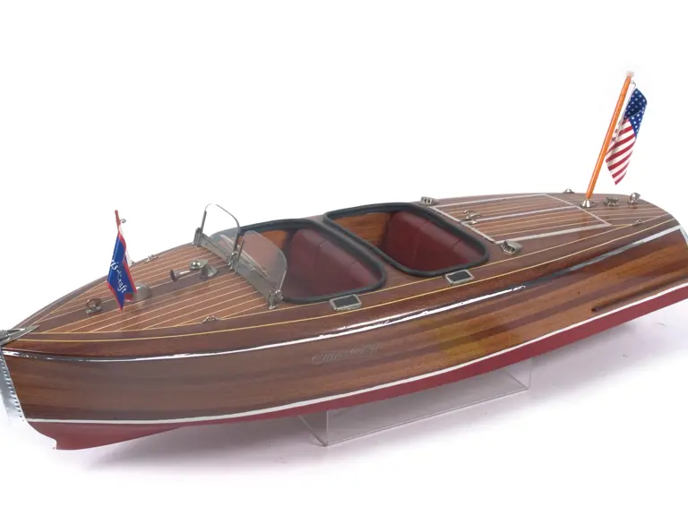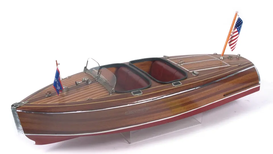 Offered here is a wonderful, hand crafted model Chris-Craft runabout. The wood paneling is set off by bright metal accents, and makes an outstanding showpiece.