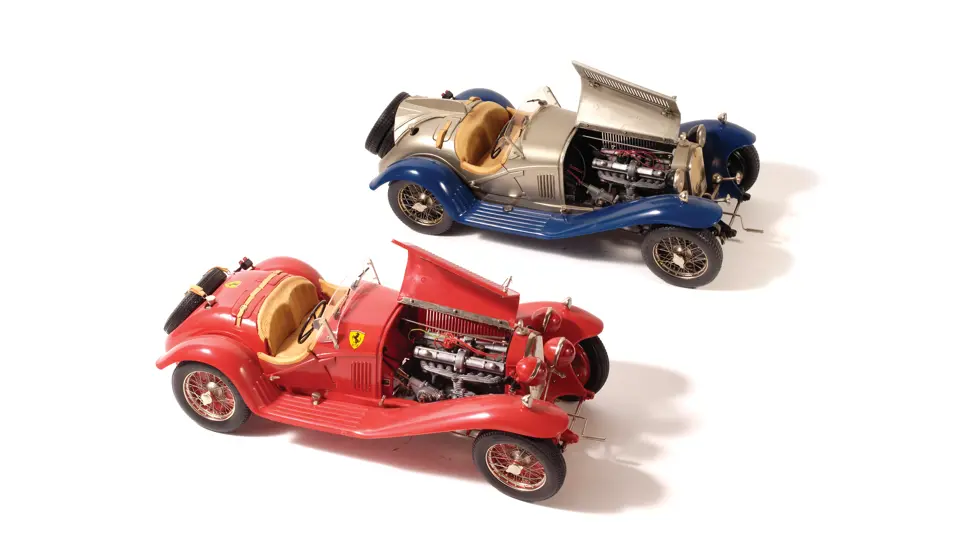 Offered here are two desirable examples of model craftsmanship. Included is a 1932 Alfa Romeo Spider Touring Gran Sport in good, complete condition, and a Alfa 8C 2600 Mille Miglia / Scuderia Ferrari, also in good condition, save one wheel, which is missing its wire spokes. This delightful pair represents hundreds of hours of assembly, and would make a second to none showpiece for the Alfa enthusiast.