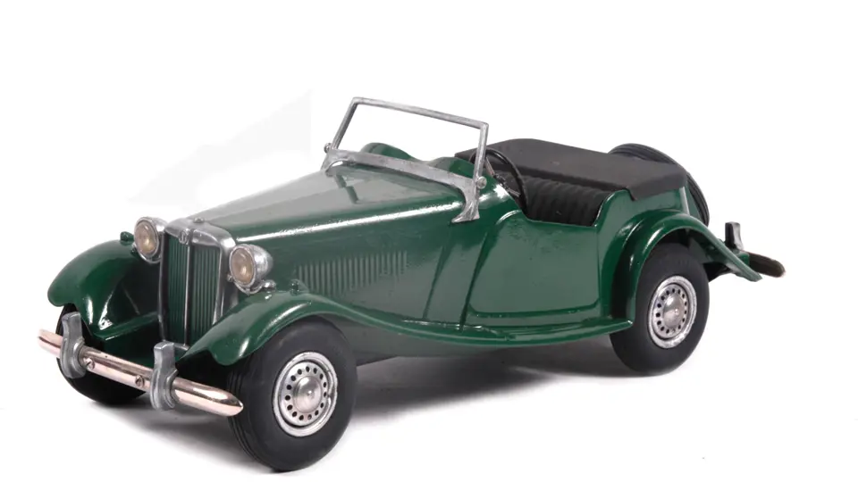 Two very presentable Doepke model cars are offered here, exhibiting virtually flawless paint and nicely preserved, complete metal trim. Lot also includes two new old stock Monogram 1:24 scale MG-TC model kits, a set of �Touring� automobile card game cards, and four varying MG model cars. Among them are two hand-built wooden examples. Two older plastic models round out the group, one of which is of Spanish manufacture.