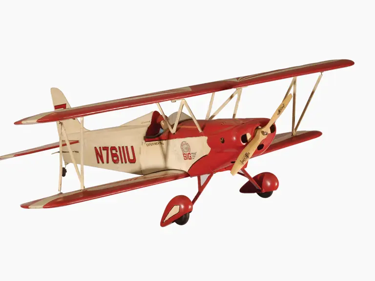 Wingspan: 84 inches; Length: 62 inches. Wingspan: 44 inches; Length: 38 inches. Lot includes a R/C model of the Smith Miniplane kit by Sig Manufacturing, in rough condition. A low wing sport model in good R/C flying condition is also included.
