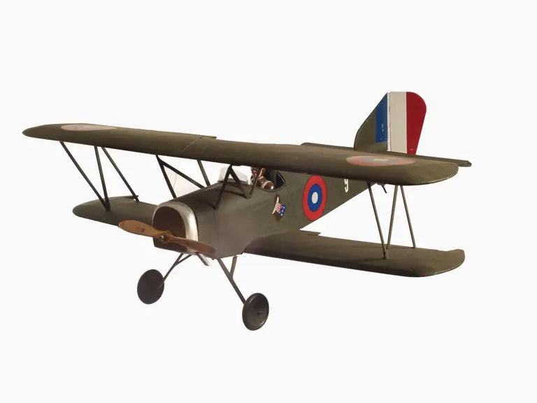 Wingspan: 44 inches; Length: 36 inches; Scale: 1:7. Presented here is a nicely detailed, static display scale model of a WWI biplane fighter.
