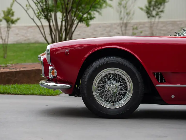 The example offered here completed production on 13 August 1960 and was delivered new to Rome, Italy. It left the factory finished in Grigio Florida with a red leather interior and has since been refinished in red and fitted with a black interior. It rides on dazzling Borrani wire wheels with three-eared knock-off spinners.