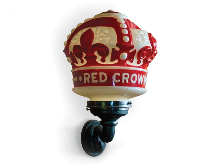 This original Red Crown globe has been mounted on an attractive lamp to create the perfect decorative lamp for the petroliana aficionado. Globe is in very good condition. Red coloring shows minor flaking and crackling, but generally presents well.