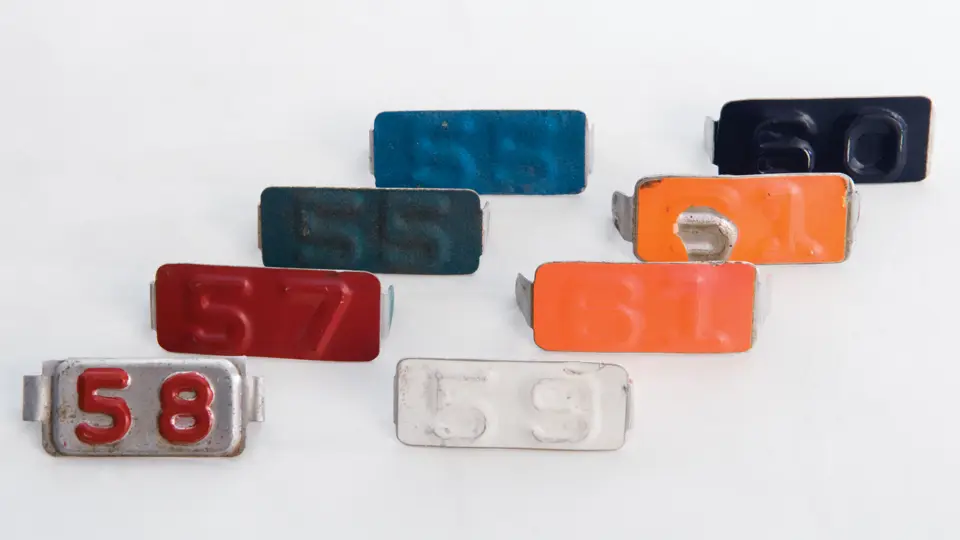 A unique assortment of tags from the 1940s-1960s. The perfect final detail for your classic or restored automobile. Authentic and generally in good condition.