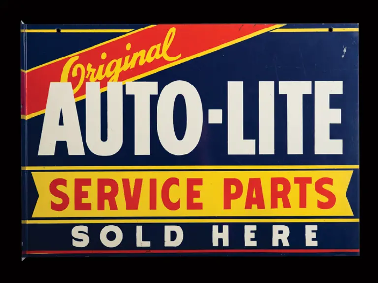 Double-sided;Original;Steel;20x14 inches. Attractive and brightly colored flange sign. Only slight fading, very good edges. Several scratches in top right quadrant of one side.