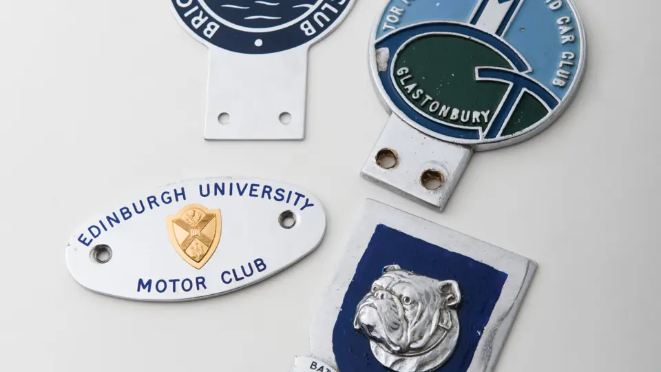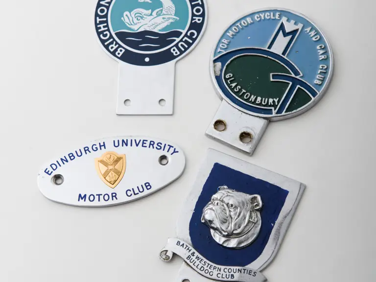 Group lot of various British automotive badges such as the Brighton and Hove Motor Club and the Edinburgh University Motor Club.