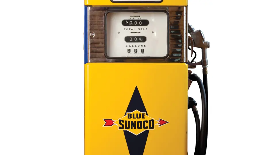 Manufactured by Wayne, with iconic Sunoco colors and logo. Features original pump plate. Beautifully restored and very attractive.