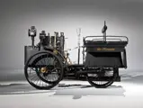Dubbed “La Marquise,” after the Count de Dion’s mother, this quadricycle is much more compact, steering with its front wheels and driving the back wheels through connecting rods, rather like a locomotive. (The same principle was applied to the contemporary Hilderbrand & Wolfmuller motorcycle, though it proved difficult to ride, with so much unbalanced weight whizzing around.)