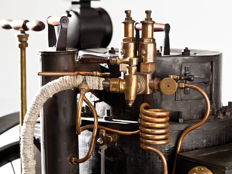 The two started off by adding a steam engine to a tricycle and then built a Victoria quadricycle in 1883. This had belt drive and inconvenient rear-wheel steering, and its liquid fuel was prone to suddenly catching fire. With its large vertical boiler up front, it looked like a coffee pot on wheels, so back to the drawing board they went. A year later, they came up with a much more practical arrangement, which is the car offered today.