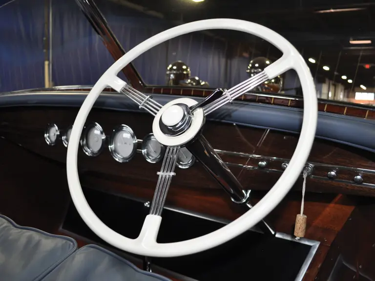 Shortly after the 1941 pleasure boat production was underway, pressure to fulfill their military contracts ahead of schedule was being felt. As a result, only three 27-foot custom runabouts were built during their limited 1941 production. The three custom runabouts were hull numbers 27056, 27060, and this example, number 27061. They were shipped from the Chris-Craft factory to owners in three states, New York, Massachusetts, and Michigan. As a result, the 1941 27-foot Chris-Craft Custom Runabout has always been recognized as one of the extremely rare and most sought-after models in their custom runabout fleet. This example, which was originally delivered to Massachusetts, is believed to have only two owners since new and was recently restored by Doug Morin, a renowned restorer of antique boats, in Bay City, Michigan.