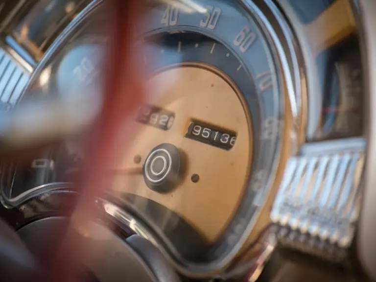 It is believed that this car, chassis number 7410001, is likely the first production model Town & Country built for 1949. Finished in Pearl Tan with a tan canvas roof, it is properly finished inside in red leather with tan Bedford cord upholstery. It is an older restoration that should continue to serve its new owner well. Until recently, it was long-term in the collection of Bernard Grissinger of Mount Joy, Pennsylvania. The body, paint, chrome, and convertible top are in good condition, while the interior shows some wear but remains attractive and serviceable. Both the chassis and underhood show minor evidence of use and reflect a car that has been driven and enjoyed by its owner.