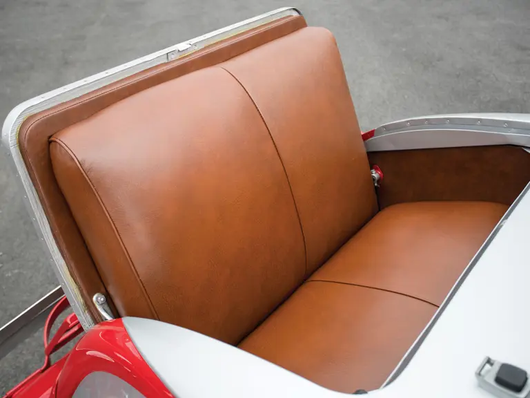 This rare Hupmobile, with a simulated “boattail” body with rumble seat created by coachbuilder Raulang of Cleveland, became part of the consignor’s collection when it was discovered in a junkyard approximately 22 years ago. The car has been resurrected and restored with an emphasis on painstaking detail. Many of the parts had to be recreated by talented metalworkers while others, including the braking system and exterior emblems, are new old-stock pieces that today are virtually unattainable. The consignor notes that it took nearly two years to create and masterfully duplicate the convertible top mechanism that needed to be fabricated. The restoration took nearly seven years to finish and has now been completed for five years. Work was done by Eddie Symonds of Hackettstown and Hullco-Layton, both of New Jersey. Interior work was done by Tom Kuka Interiors of Sussex, New Jersey.