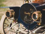 This “barrel-front” Franklin was purchased from the Imperial Palace Collection in 1998. Previous owners have included Jim Thomas of Miami, Florida. The recipient of a 1,600-hour-plus restoration, it is painted in deep blue with a white undercarriage. Dark blue accents on the running gear are very attractive. An AACA National First Award attests to the quality. The car has Badger Brass Solar 656 acetylene headlamps, with carbide generator and oil carriage lamps. An accessory windshield by L. Lawrence of Newark, New Jersey, a quality manufacturer, has been fitted, mating to a new touring top and side curtains. The tires are P.J.A. Pneumatic 30 × 3 all-white clinchers. The overall result is a very tidy and comfortable car for touring with five passengers.