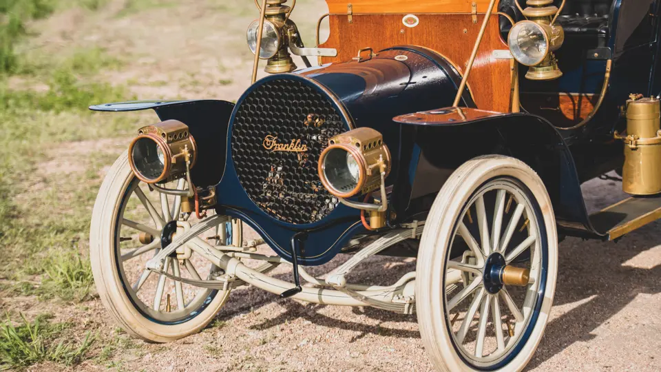 From 1904 a “barrel-front” hood was adopted, with a simple screen at the front to let the cooling air in. Later on, Renault-style “scuttle” hoods were adopted, and still later, a “horse-collar” grille. There was no mistaking a Franklin on the road.