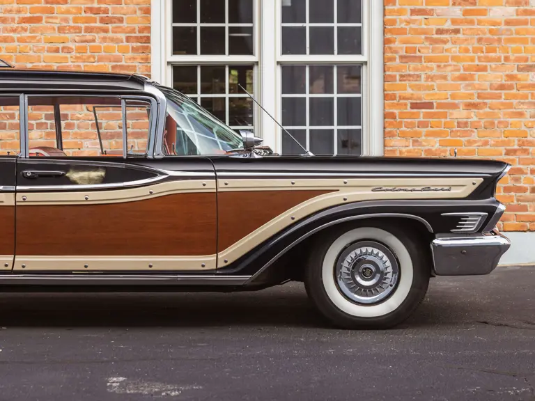 Mercury touted its 1959 Country Cruisers as the “Newest of All Station Wagons," and this well-preserved Colony Park stood at the top of the line as the sum total of mid-century American splendor. At just over 18 feet long, the newest wagon bristled with features and Jet Age style, from its quad headlamps to afterburner-inspired finned tail lights.