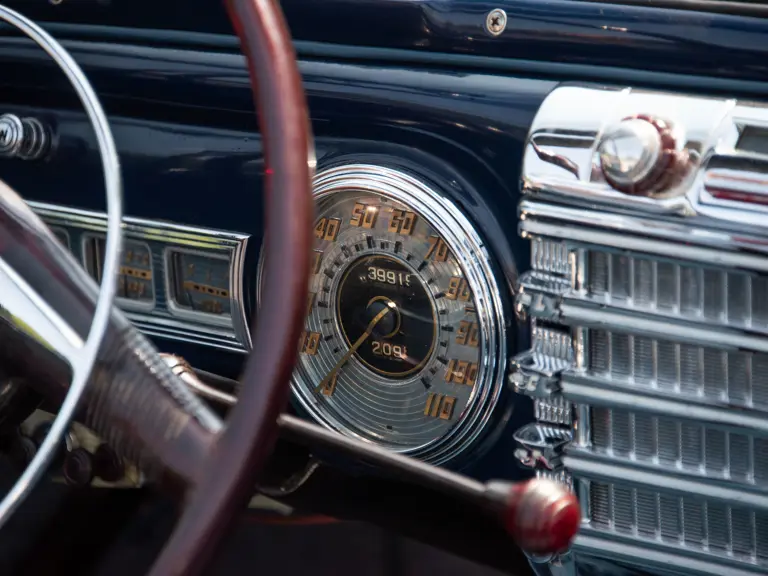 This example was assembled on 5 November 1947, according to a copy of its original build sheet. It came finished from the factory, as it is now, in attractive Grotto Blue with a tan top. The interior featured blue leather and whipcord upholstery while options included a radio, heater, chrome bands, fog lamps, and whitewall tires.
