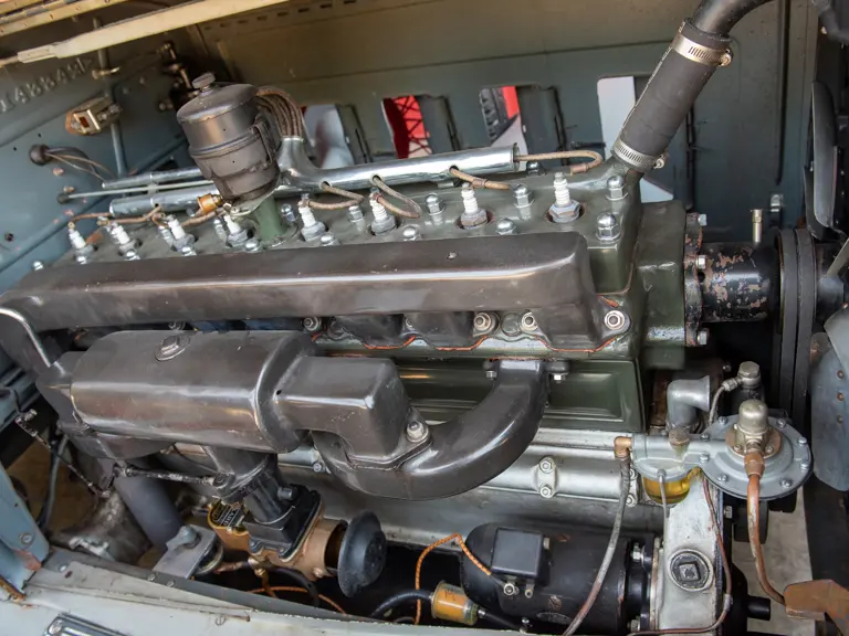 This Deluxe Eight Convertible Coupe was delivered new via the pivotal Earle C. Anthony distributorship of Los Angeles. The rest of the car’s history is unfortunately lost until the late-1960s when early collector Nathan Derus is said to have found the car outside a garage in Venice, California. Hal Orchard of Santa Ana, California is then reported to have restored the car in the 1970s. Later, in the 1980s, noted marque authority Eric Rosenau is said to have rebuilt the straight-eight engine. During this later refurbishment, the rear axle is said to have been fitted with 3.54:1 gears to facilitate driving in modern traffic and long-distance touring.