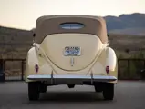 The exceedingly rare Lincoln-Zephyr convertible sedan offered here was one of just 302 built in 1939, a year the Zephyr gained new hydraulic brakes and modest styling changes, including a redesigned grille, bumpers, and doors with flanged sills to conceal the previously exposed running boards. Inside, the stylish design aesthetic continued with a clean console rising from the floor as a base for the large, multi-gauge cluster acting as an orb-like cornice. Within the large, Art Deco, scripted roundel was the speedometer, as well as gauges for temperature, fuel, oil, and battery. A smaller clock sat below and a voltmeter, which Ford called a “battery condition indicator,” replaced the ammeter. Upholstery choices included cloth or leather and Convertible Sedans like the example offered here had new inside door panels as well as redesigned rear arm rests and seat-cushion patterns. Power came from the revolutionary 110-horsepower L-head V-12 engine, shifted through a rugged Zephyr three-speed manual transmission.
