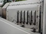 - Wears an older, appealingly patinaed exterior finished in gray with accent striping