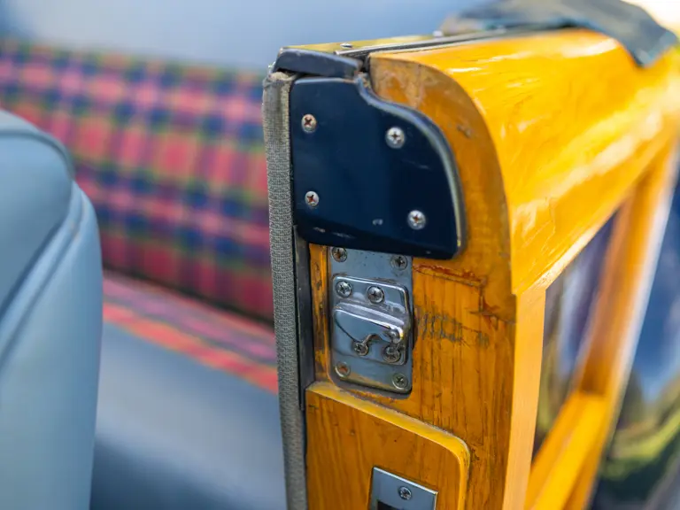 Introduced in 1941, the Chrysler Town and Country blended the finest aspects of sophistication and utility and embodies a remarkable chapter in American automotive design. It was instantly renowned for its exquisite construction, which included a combination of structural white ash and rich Honduran mahogany, all skillfully finished with the same attention to detail as fine furniture. Artisanal touches such as exposed finger joinery and complex contours showcased a level of craftsmanship that was becoming increasingly rare in mass-produced automobiles. Constructed on a 127.5-inch wheelbase, the Town and Country Convertible offered as much space and luxury as the sedan variants while its 323.5-cubic-inch straight eight-cylinder engine and Fluid Drive semi-automatic transmission ensured both substantial power and a smooth driving experience.